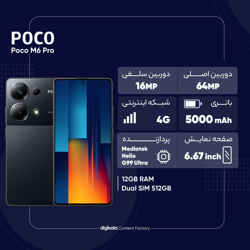 گوشی موبایل شیائومی مدل Poco M6 Pro دو سیم کارت ظرفیت 512 گیگابایت و رم 12 گیگابایت
