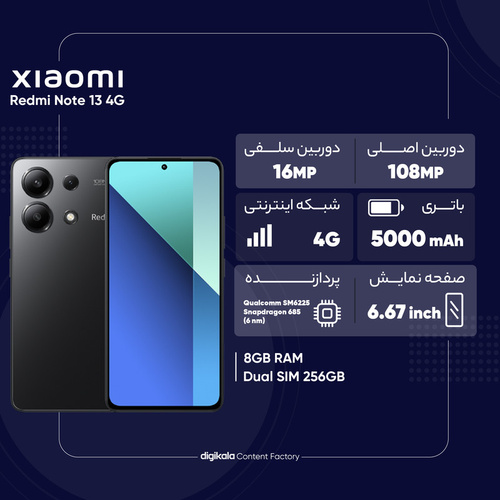 گوشی موبایل شیائومی مدل Redmi Note 13 4G دو سیم کارت ظرفیت 256 گیگابایت و رم 8 گیگابایت